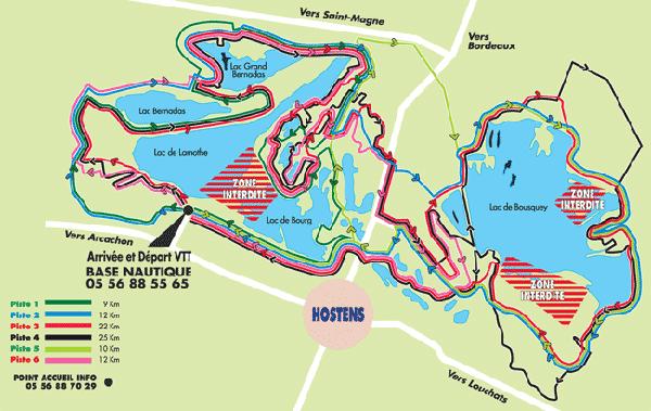Jouxtant le Domaine Départemental Gérard Lagors, Hostens vous offre ses lacs et ses espaces de baignades surveillées, des circuits VTT, des locations de VTT, de canoës, de pédalos.